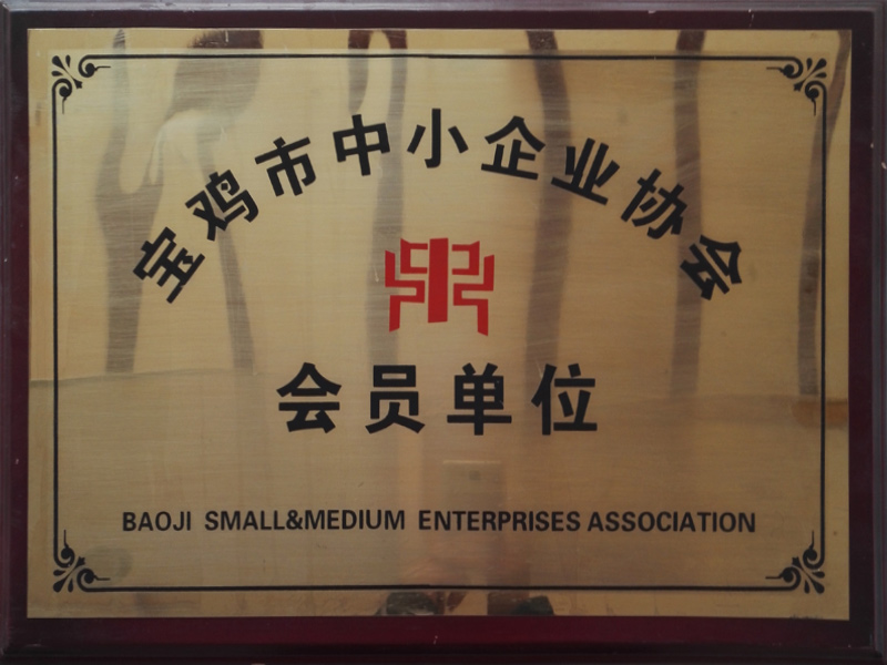 寶雞志普有色金屬加工有限公司被寶雞市中小企業(yè)協(xié)會(huì)授予會(huì)員單位。