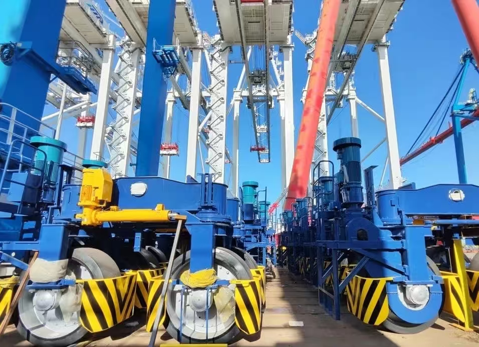 輪胎式行走機(jī)構(gòu):靈活的全地形征服者,展現(xiàn)出風(fēng)火輪的另一重神韻——千變?nèi)f化的適應(yīng)能力。輪胎式起重機(jī)的行走機(jī)構(gòu)通過(guò)輪胎實(shí)現(xiàn)移動(dòng)在空間有限的堆場(chǎng)內(nèi),能夠輕松完成集裝箱的裝卸和堆碼作業(yè)。在港口這樣復(fù)雜的作業(yè)環(huán)境中如履平地,在自由行駛和作業(yè)時(shí)保持穩(wěn)定,與哪吒風(fēng)火輪“遇水化蓮、遇石化焰”的靈活多變有著異曲同工之妙。