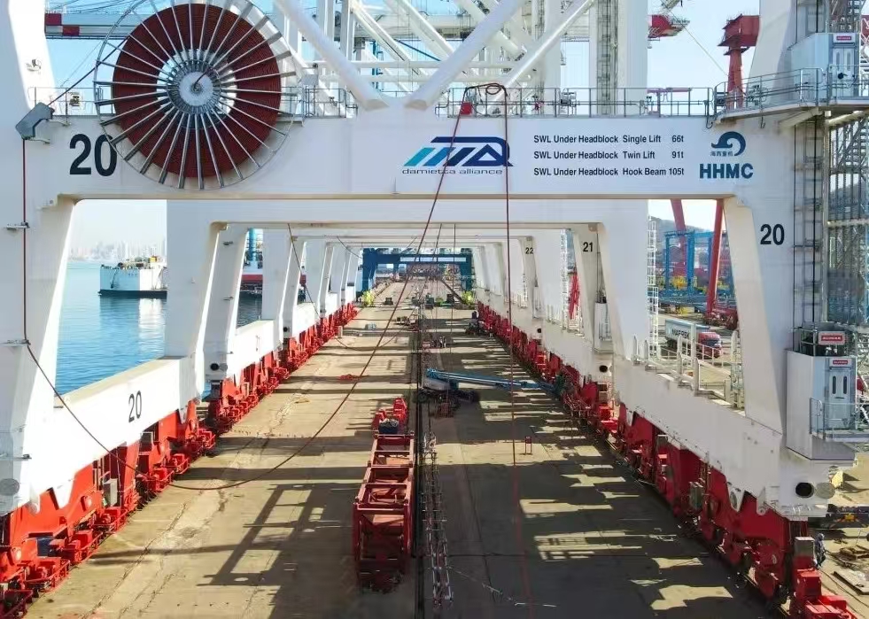 2025年春節(jié)假期,《哪吒2》的熱浪席卷熒幕。哪吒腳踏風(fēng)火輪,手持火焰槍,踏火而行,刺破云霄,騰云駕霧,所向披靡。中船旗下的武漢船機(jī)海西重機(jī)公司為各大港口打造的“鋼鐵哪吒”——港口起重機(jī)(港機(jī))和岸邊集裝箱起重機(jī)(岸橋)載著貨物穿梭往返碼頭之間,港機(jī)的行走機(jī)構(gòu)和岸橋的前伸臂,恰似哪吒的神兵“風(fēng)火輪”“火焰槍”照進(jìn)現(xiàn)實(shí)的科技化身。