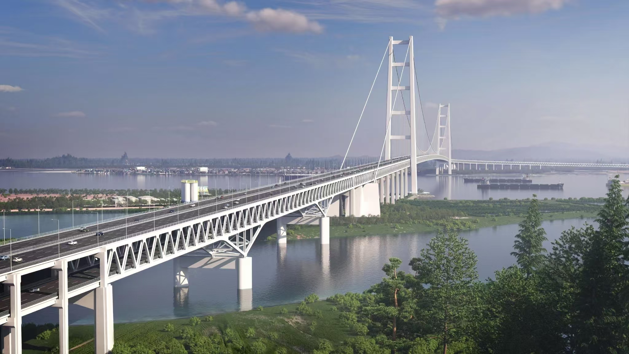 獅子洋大橋超大型索鞍、索夾制造工藝研究:廣東獅子洋大橋采用主跨2180米雙層鋼桁梁懸索橋的方案“一跨過江”,創(chuàng)下多項世界第一紀(jì)錄,主纜纜力達(dá)到數(shù)萬噸。武漢船機(jī)技術(shù)團(tuán)隊深度參與該項目設(shè)計研究,在超大型索鞍制造工藝研究、主索鞍頂推性能研究、大直徑索夾研制等課題研究工作中進(jìn)行技術(shù)攻關(guān),突破了索鞍高強(qiáng)度鋼材應(yīng)用、高強(qiáng)索鞍滑動副研制、特大直徑索夾制造及超大型鑄焊索鞍加工、焊接,有力支撐了這座世界級跨海通道的建設(shè)。