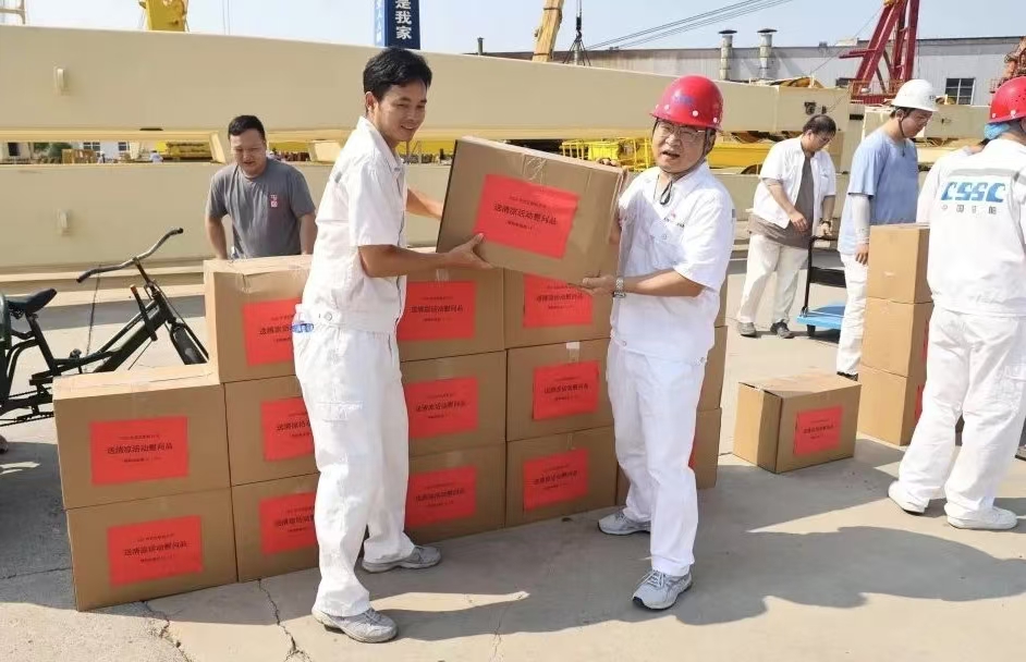 上午9點,公司領導陳世龍、孫凱與相關(guān)部門負責人,在公司錨絞機負載試驗臺架、廠北露天試驗現(xiàn)場、工業(yè)園油漆房看望和慰問堅守在崗位上的一線員工,將462份清涼物資送到員工手中,并叮囑各部門負責人和現(xiàn)場作業(yè)人員從細節(jié)入手,把安全健康放在第一位,合理安排好工作和休息時間,切實將防暑降溫工作落實到實處,讓員工在安全、健康的環(huán)境下工作。